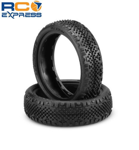 Like the name suggests, the Pin Swag tire combines the outer lugs of a JConcepts Swagger front tire with the dense arrangement of specialty pins. Now optimized as a 2wd front tire, the pins themselves are round and crisp to the top where they climax to a point. Near the sidewall, the Swag enters with a smooth transition and drops off to a ledge giving steering control. The Swag is split down the center to give a little individual control to contort to surfaces. In between, a stagger section with angular front is placed just behind a vertical rib to complete the design. The tight spacing of the Pin and Swag bite together and minimize wear across the carcass. An already low-profile carcass like the successful Fuzz Bites rolls through the turns and transitions well at high and low speeds. A unique feature on the Pin Swag and many of the JConcepts carpet turf racing tires, is the scalloped tire bead which removes a lot of weight from a normally beefy area. The tips of the bead touch off on the inner beads on the wheel which lead to a great alignment but now with reduced rotating weight. During the gluing process, it is also handy to have some breathing room for the glue and the geometry gives many edges and ledges to adhere to. Offered in 2.2" bead mounting diameter fit to popular wheels like the #3376 Mono slim wheels, available in bright white and florescent yellow.