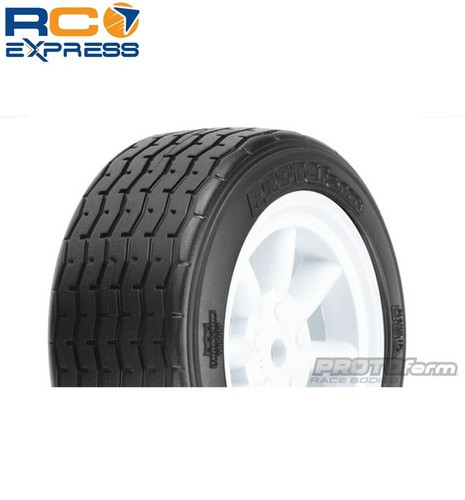 Now pre-mounted for your convenience This pair of VTA tires is fully-approved for U. S. Vintage Trans-Am Racing and is fully-capable on any surface: carpet, prepared asphalt or parking lots. Utilizing a super long-lasting compound and molding technology perfected by our partners at Pro-Line Racing, we're proud to say these VTA spec tires are 100% Made in the USA. On high-grip CRC carpet, these tires have been tested to provide an easy-to-drive handling feel and comparable lap times to previous VTA tires, all without the need for superglued sidewalls. On asphalt, these tires grip well with additives and provide realistic tire screeching sounds for an ultra-scale effect. PROTOform's VTA pre-mounts are sold in pairs and mounted our durable, nylon, 8-spoke wheels. The 26mm fronts are 0 offset. Please