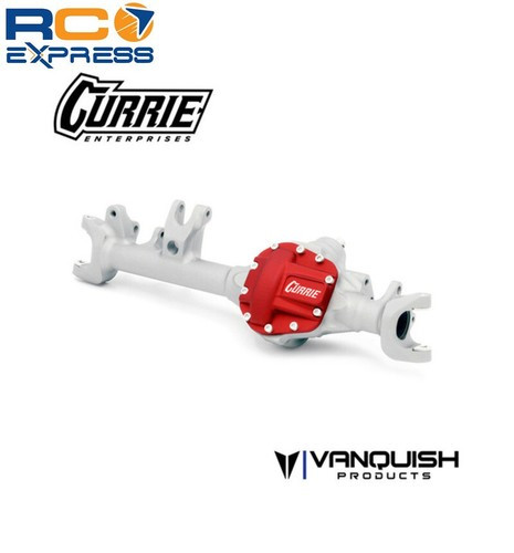Vanquish Products Currie HD44 Aluminum Axle for VS4-10 utilizes the Currie Enterprises high-clearance center section design with rotated cover which improves obstacle slide-over. Fully licensed by Currie Enterprises Comes with One Piece Bearing Retainers Integrated Panhard mount Chromoly threaded inserts for kingpin screws Double shear shock mounts Compatible with factory VS4-10 links Laser Etched Red anodized Currie diff cover Includes the following: 1pc Currie Front Housing 2 pieces Bearing Reatiners 1pc Currie Diff Cover 4pc Chromoly threaded inserts Required hardware Instructions Does not include the following: axle shafts, bearings, knuckles, hexes, ring and pinion or spool/locker **Due to the nature of the gear design in the VS4-10 axles, proper shimming of the pinion gear may be required for optimal results.